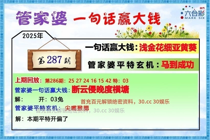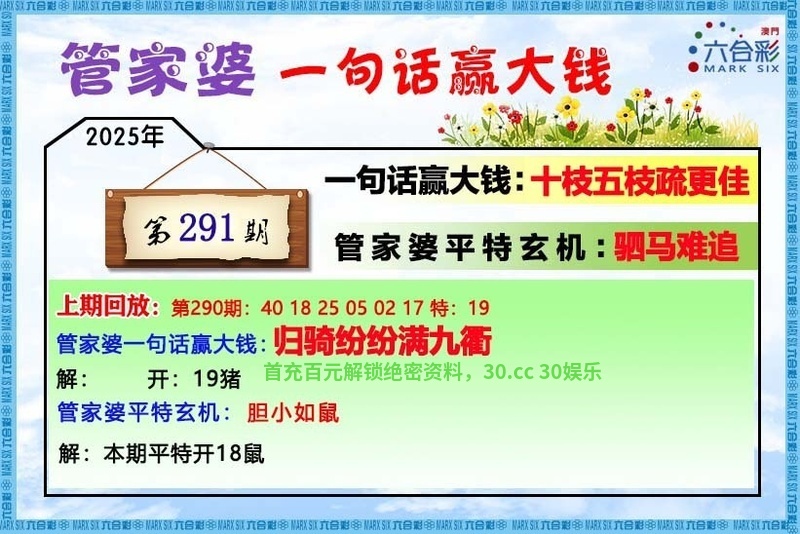 292期:白姐特段/简单发财诗/马会欲钱料/七娘一句中/开藏特图料